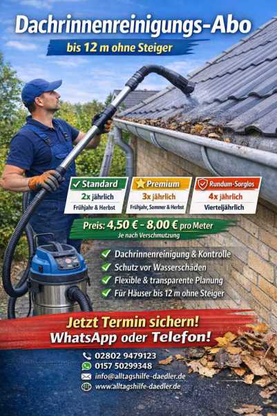 Hinweis: Preis gilt für Dachrinnen bis 12 Meter Höhe ohne Steiger.